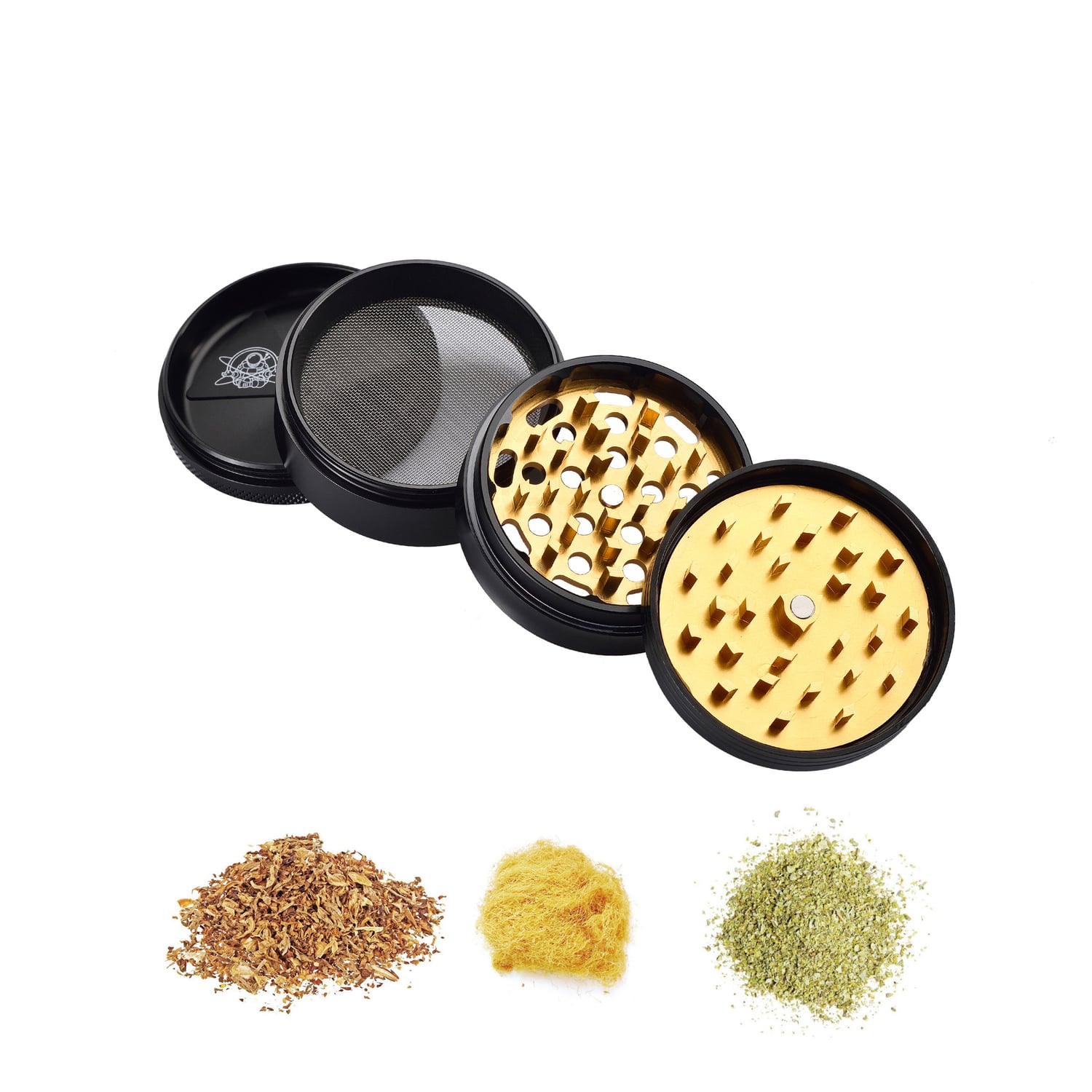 Our 63 mm grinder with a golden leaf on top is a top-of-the-line tool that is sure to impress. The beautiful golden leaf design adds a touch of style and sophistication to this already high-quality grinder. But it’s not just about looks – this grinder is packed with features that make it a standout choice. The diamond teeth ensure a precise, even grind every time, while the 4 layers provide ample space for storing your ground herbs. The aluminum construction ensures durability and reliability, making this grinder a long-lasting choice. The simple, easy-to-use design allows you to effortlessly grind your herbs to the perfect consistency every time. Experience the convenience and versatility of our 63 mm grinder with a golden leaf on top today and take your grinding game to the next level.
